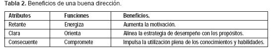 El fijar una dirección sobre las aspiraciones del desempeño tiene beneficios múltiples: energiza a los miembros del equipo, orienta su atención y acción y compromete sus talentos.