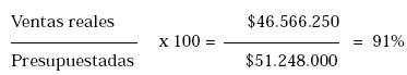 Siendo las ventas el objetivo principal del negocio y el rubro básico de ingresos, en este indicador se valora lo que es el grado de cumplimiento de las ventas presupuestadas para el período.