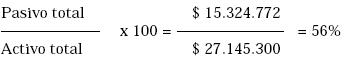 Un objetivo del área financiera es el de mantener un nivel óptimo de endeudamiento. Con este índice se puede evaluar la capacidad de endeudamiento futuro de la empresa, a la vez que muestra la proporción de los activos que pertenecen a los acreedores.