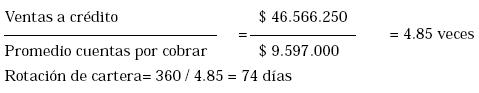 Este indicador muestra el número de veces en que el inventario de mercancías de la empresa se convierte en efectivo o cuentas por cobrar, para expresarlo en días se divide el número de veces en 360 días.