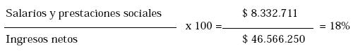 Una de los objetivos de la compañía es el de mantener un sistema de remuneración acorde con las escalas salariales existentes para empresas del mismo sector y tamaño. Su índice no se puede alejar mucho del sector. Mide la eficiencia laboral, detecta gastos laborales no proporcionados y sin ninguna relación de causalidad. Para este efecto, la tabla que mide este indicador ha sido elaborada con los promedios vigentes actualmente en el sector.