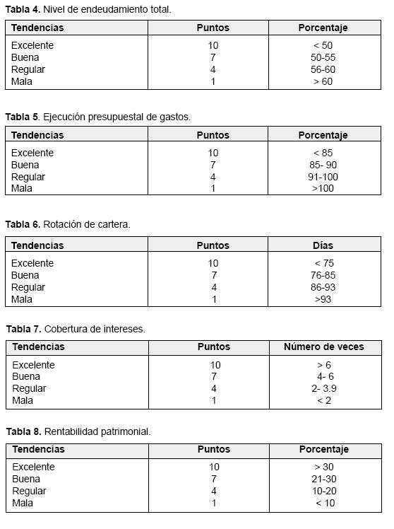 Hay otros indicadores que, por su naturaleza, no pueden ser calificados en esta Tabla 1, razón por la cual, para definir su tendencia se les asigna una tabla propia y son los siguientes: (Tablas de la 2 a la 15).