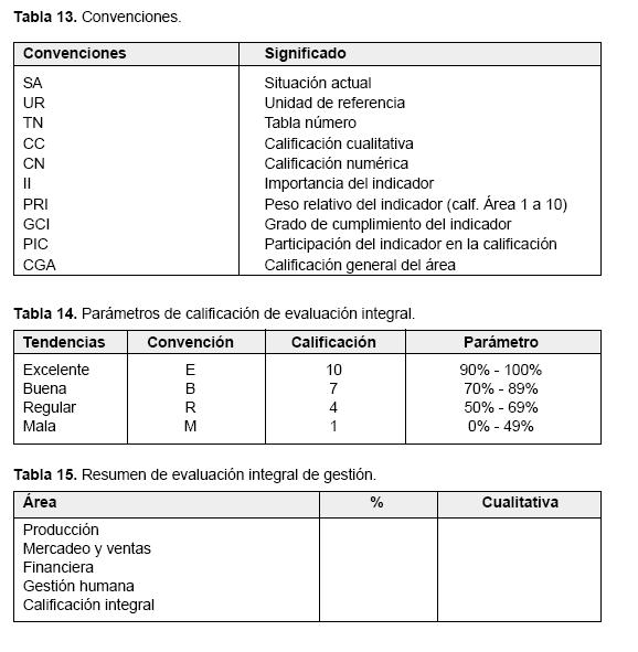 Los porcentajes, así obtenidos, hay que mirarlos en la Tabla 14, para dar la calificación definitiva de la empresa en lo que se refiere a la gestión durante el período evaluado.