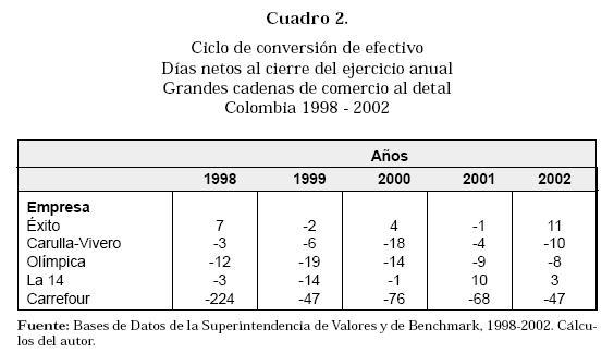 CICLO DE CONVERSIÓN DE EFECTIVO EN LAS GRANDES EMPRESAS DE COMERCIO AL DETAL EN COLOMBIA (1998-2002)