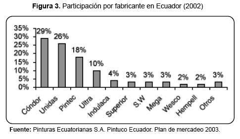 En el 2002 la inversión realizada en Ecuador por la compañía colombiana le ha permitido asegurar 1.4 millones de galones en un mercado que estiman mueve alrededor de 8 millones de galones al año y US$70 millones en ventas (Ver Figura 3), logrando capturar alrededor del 20% de participación en tan sólo tres años.