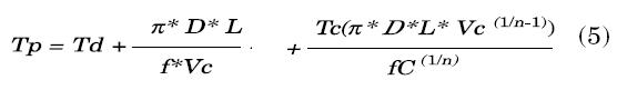 Donde L es la longitud de la pieza de trabajo. La cantidad de piezas que se maquinan se puede calcular como: Np = T/Tm. Por tanto, reemplazando en la ecuación (3) tenemos la siguiente expresión: