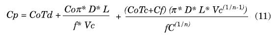 En la derivada de la ecuación 11 con respecto a Vc se puede hallar la velocidad de corte para el costo mínimo por pieza.