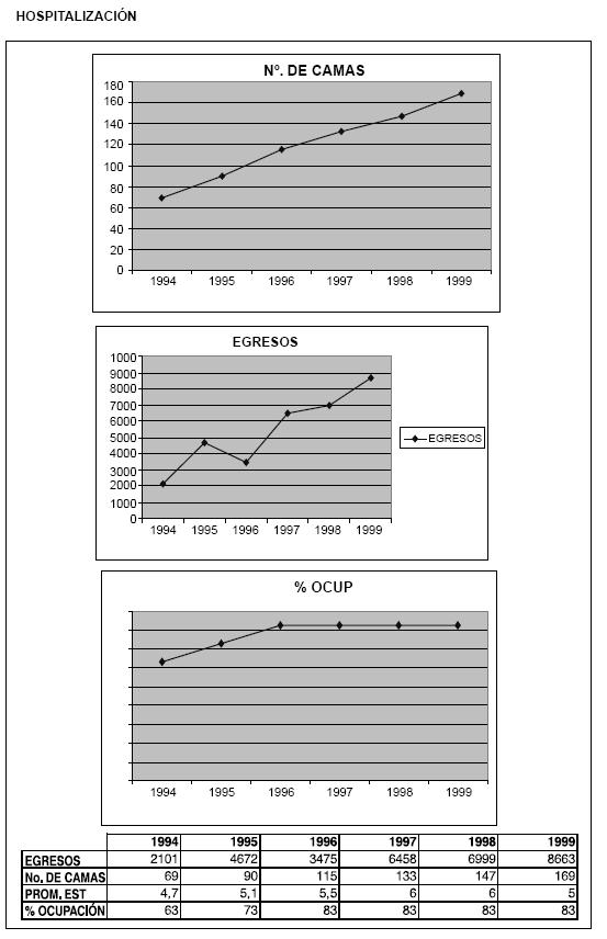 En 1995 estaban en funcionamiento 120 camas por hospitalización, 18 camas para cuidados intensivos adultos - pediátricos y 10 camas para cuidado intensivo neonatal, con todos los servicios de apoyo. En 1996 se habían realizado múltiples cirugías cardiovasculares y cateterismos cardíacos. A principios de 1996 se efectuaron los primeros trasplantes de corazón e hígado, en forma exitosa.