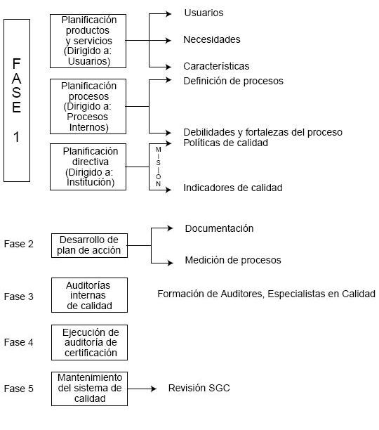 El cronograma de implementación, una vez aprobado por la Dirección, se programó a quince meses y se realizó de acuerdo con los requisitos ISO 9001:2000 desde el numeral 5 hasta el numeral 8.