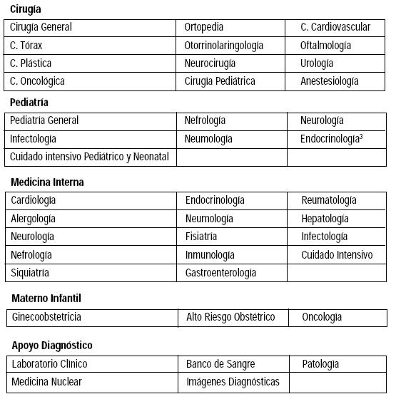 Desde su inicio, la Clínica contaba con especialidades médicas y quirúrgicas, y subespecialidades.