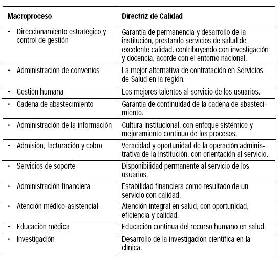 Durante estos años los servicios se han ido consolidando, puesto que existe una directriz clara de proveer servicios médicos de alta complejidad, con el marco del aseguramiento de la calidad que ha sido una idea que define la razón de ser de la institución y es liderada personalmente por el Director Médico quien supervisa y participa de todas las iniciativas, acciones y decisiones de cada unidad asistencial, en las revistas diarias de todas las unidades, en todos los comités asesores de la Dirección Médica y en las reuniones semanales de Auditoría Médica. Desde el punto de vista administrativo se realiza una evaluación continua y sistemática del personal médico y administrativo, con seguimiento diario de las actividades en cada área, y además se propende a mantener relaciones responsables y transparentes con clientes y proveedores, basadas en reglas claras y en la ética.