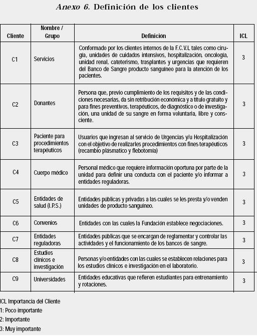 Aparte de esto se registraron todos los Documentos de Origen Externo que son aquellos no generados en la Fundación Clínica Valle del Lili, pero sí se utilizan como soporte de los procesos de las áreas. Estos son enviados por entidades externas de la Clínica (proveedores, empresas, instituciones) para soportar la operación institucional. En el Banco de Sangre estos documentos son los insertos de las pruebas infecciosas generados por las casas comerciales y la legislación propia para Bancos de Sangre.