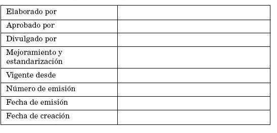 Cada documento tenía además una ficha de divulgación y una de revisión y se clasificaba en Mejoramiento y Estandarización, con un sello según su clasificación: