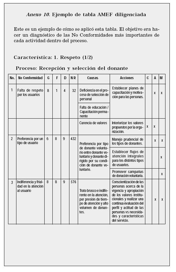 En este momento, luego de tener claras las actividades de cada proceso, se inició la verdadera planificación utilizando como herramienta la tabla AMEF, Análisis de Modo y Efecto de Falla, para poder hacer un diagnóstico priorizado de la situación del Banco (Ver Anexos 8 y 9).