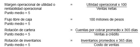 La información requerida para la evaluación se toma del balance general y del estado de resultados.