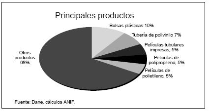Como primera medida, es necesario aclarar qué es el sector plástico. Este sector, que incluye únicamente los productos de plástico, no sus materias primas, produce principalmente bolsas plásticas impresas y sin imprimir, tuberías de polivinilo, películas tubulares de plástico impresas, películas de polipropileno y películas de polietileno.3 El hecho de no incluir a las materias primas utilizadas es porque éstas figuran en el sector de otros químicos industriales.
