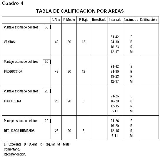 Este formato permite, trasladando los puntos obtenidos por cada área en el formato anterior, presentar una calificación cualitativa de acuerdo con los intervalos de la tabla.