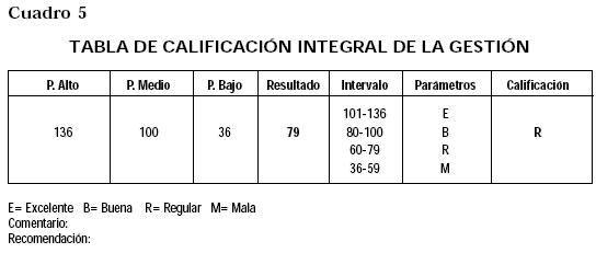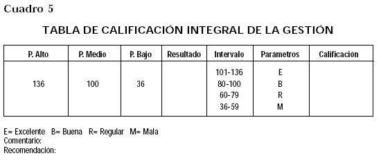 Tabla de calificación integral de la gestión (Cuadro 5)