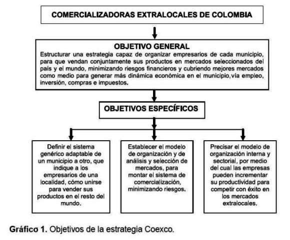El presente artículo surge de una investigación patrocinada por la Universidad Nacional de Colombia, sede Manizales, con el fin de identificar la voluntad de los empresarios en las localidades para unirse en torno de un programa capaz de permitir comercializar sus productos en mercados seleccionados del país y de otras naciones. En consecuencia, la investigación debería indicar cómo habría de funcionar el programa, una vez los empresarios se manifestaran a favor de la iniciativa y estuviesen dispuestos a comprometerse en aportar sus ideas para estructurar un modelo de organización en capacidad de desarrollar la propuesta, denominada Coexco (Comercializadoras Extralocales de Colombia) la cual habría de ser adaptable, flexible, para permitir que su implementación fuese posible en localidades distintas.