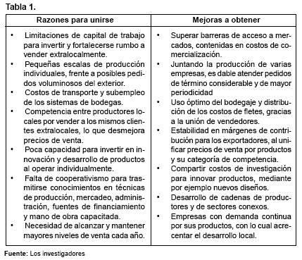 Los empresarios destacaron como razones para unirse y la mejora a obtener, los elementos indicados en la Tabla 1.