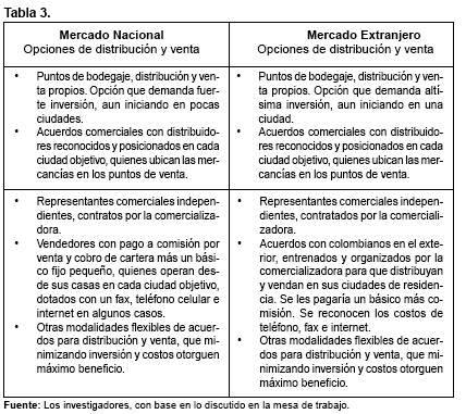 La decisión final sobre asociarse o no a la comercializadora local, debe ser una posición madurada, consciente, por lo cual debe adoptarse al final de un proceso de acercamiento y diálogo racional, observadas las variables aquí expuestas y otras definidas a juicio de los participantes en una mesa de trabajo, abierta para evaluar la opción Coexco. Los empresarios manizalitas unánimemente dijeron que harían parte de una estructura de comercialización como la contenida en la propuesta estudiada.3.2 Selección de mercados y definición del sistema de organización Coexco