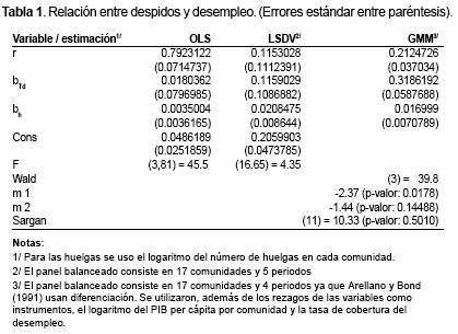 1. En un modelo simple de datos de panel, Mora (2005) encuentra para España que existe una relación positiva y significativa entre los casos de despidos cuyas sentencias fueron a favor de los trabajadores y el desempleo.