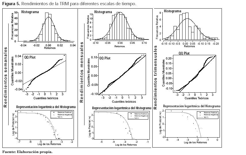 Así, este hecho estilizado implica la necesidad de estudiar por separado las características de los rendimientos de un mismo activo, lo que depende de la escala de tiempo. También es claro, que entre menor sea la periodicidad estudiada, más alejada estará la distribución de los rendimientos de la normalidad.