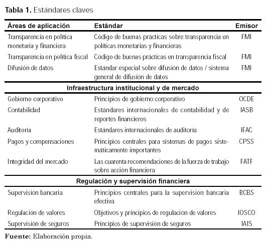 El IASB hace parte de la Nueva Arquitectura Financiera Internacional, NAFI, el conjunto de acuerdos internacionales básicos para consolidar la estabilidad financiera y prevenir las crisis en todo el mundo. La Tabla 1, muestra los estándares clave.
