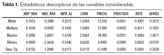 Siguiendo a Hanley (1993) se usará como índice explicativo el porcentaje sobre el precio mínimo del rango que supone el precio máximo.