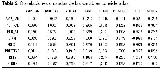 Por último, se aportan las correlaciones cruzadas entre variables. Como se puede ver, hay una correlación bastante alta entre el precio de salida y el tamaño de la colocación.