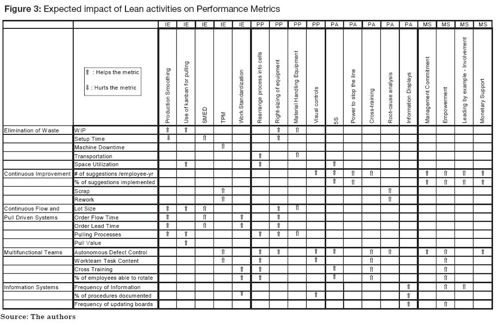 Figure 3 shows the impact that these Lean activities and features are expected to have on the different performance measures defined.