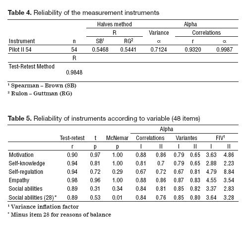 One of the more common problems observed in instruments that measure EI is their low discriminating capacity. To overcome this shortcoming, a reproducibility coefficient for scaleograms and the Cronbach coefficient were applied.