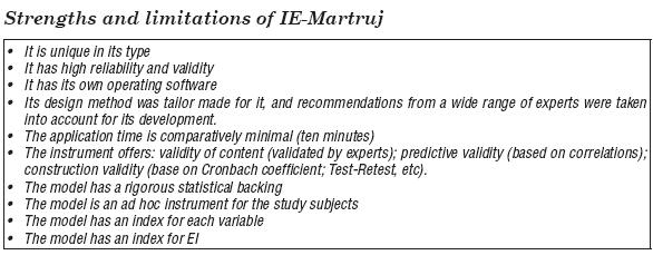 The final EI mathematical model was worked out considering the ortogonality of the variables, as there was no similar instrument to follow.