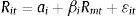 Donde Rit es el logaritmo de los retornos del título i en el día t; Rmt son los retornos del mercado sobre el día t utilizando como proxy el índice del mercado Ibex 35; αi y βi son los parámetros del modelo de mercado estimados mediante máxima verosimilitud y εit es una variable aleatoria que se distribuye condicionalmente como una distribución normal N(0, σ2it), donde σ2it sigue un proceso ARCH(1) como el reflejado en la ecuación A2.