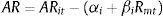 La estimación de este modelo elimina las potenciales deficiencias del modelo de mercado al describir el comportamiento estocástico de los retornos de los activos. Por su parte, las rentabilidades anormales diarias (ARit) son calculadas para cada día del periodo de evento (–10, +10), restando de los retornos normales los retornos actuales, conforme a la ecuación A3: