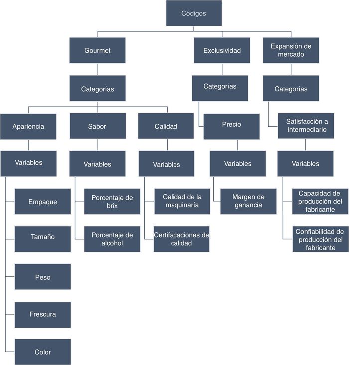 Luego de recopilados los datos, se procedió a tabular y organizar la información para realizar los análisis de los datos mediante el conteo de frecuencias credenciales, el cual se usó para darle confiabilidad y transparencia al proceso como se condujo la investigación (Hannah y Lautsch, 2011). La figura 1 presenta un ejemplo del proceso de codificación y clasificación de variables identificadas como parte del proceso de las entrevistas. Para este ejemplo se utilizó el Caso 4: DCP. Los datos cualitativos se organizaron en una matriz por variables y tipo de empresa, lo que permitió observar las tendencias del fenómeno (fig. 1). Con el objetivo de proteger la identidad y preservar el anonimato de las empresas, se identificaron estas con la etiqueta enumerada de caso y seudónimo: Caso 1: PMM, Caso 2: TAC, Caso 3: DBO, y así sucesivamente. Finalmente, se realizó una comparación de los resultados obtenidos de las entrevistas en profundidad y de los datos secundarios para identificar diferencias o similitudes entre la percepción de los fabricantes y la de los distribuidores, sobre los factores que ellos entienden son importantes para la comercialización de alimentos especiales en mercados nicho extranjeros.