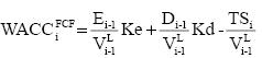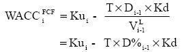 Where Ku is the unlevered cost of equity, ψ is the risk (discount rate) of the TS, D is market value of debt, E is market value of equity and VTS is the market value of TS; i is the period of analysis.