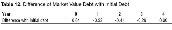 Now we can check the difference between the initial debt schedule and the new debt schedule based on the market value of debt.