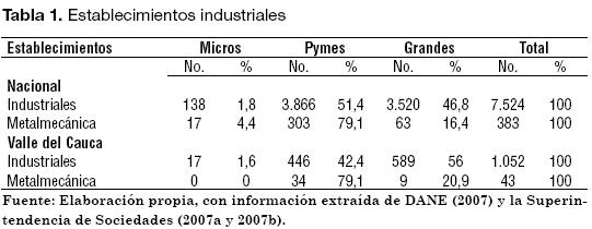 En el Valle del Cauca, se encuentran 43 empresas del sector metalmecánico (aproximadamente 4% de la industria regional), de las cuales el 79,1% son pymes y el 20,9% restante, grandes empresas. Ver Tabla 1.