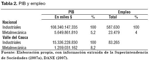 En Colombia, el sector metalmecánico contribuye con el 5,2% del PIB que crea la industria, y genera el 4% de su empleo. En el Valle del Cauca, este sector aporta el 8% del PIB de la industria del departamento. Ver Tabla 2.