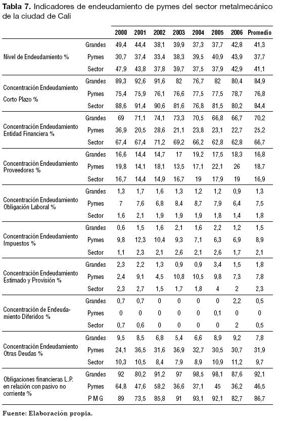 El sector metalmecánico del Valle del Cauca ha mantenido un nivel de endeudamiento un poco inferior al promedio de este sector en Colombia, por lo menos para el período 2001-2005 (Portafolio, Nest y Afine, 2006, p. 277).