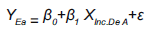 Donde YEa (1,…,4) se refiere a los estilos de aprendizaje; XInc.De A (1,…,7) corresponde a las incapacidades de aprendizaje; β0 es el intercepto; β1 es el coeficiente asociado a la variable independiente ε (pendiente); ε se refiere al término de error.