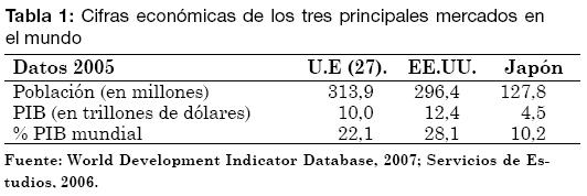 En palabras de Thurow (1992, p. 17), en 1992 hay una superpotencia militar, Estados Unidos, que se encuentra sola, y tres superpotencias económicas, es decir, Estados Unidos, Japón y Europa. Esta vez el cambio en el escenario económico mundial ha ido desde la Unipolaridad que significó la caída de la U.R.S.S. hacia una Tripolaridad, cuyos tres sectores están dados por el poderío económico representado por Estados Unidos, Japón y la Unión Europea (U.E.), ver Tabla 1.