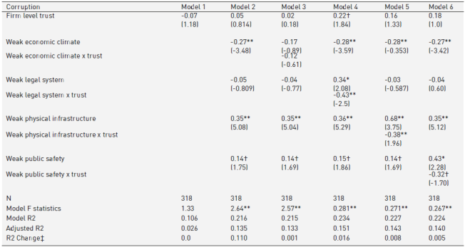 Table 4 Institutional - corruption relationship and moderating effects of trust