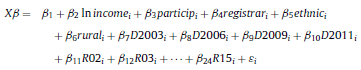 Notice that an empirical model can be derived from Eq. (5) after assuming specific functional forms for democracy and utility functions (see Appendix for details). In particular, the voter-registration rate, v, can be estimated from the following empirical specification: