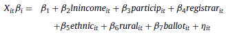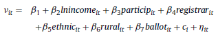 Hence, an empirical specification for the voter-registration rate, v, can be stated from Eq. (A6) as follows: