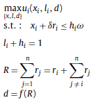where x i ≥ 0, l i and h i ∈ [0, 1], r i = 0, 1, R ≥ 0, and d ≥ 0.