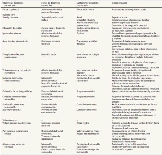 Por sus características, este modelo fue el considerado para el desarrollo de la presente investigación con base en su pertinencia y congruencia con respecto a los ODS, tal como se muestra en la tabla 1, presentando la relación entre los ODS y los factores, subfactores y líneas de acción del modelo.