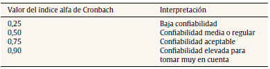 Tabla 2 Criterio para el índice alfa de Cronbach