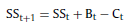 Competing agents are born with resources conceived as the agent's surplus stock (SSt). This is assigned at random. The magnitudes of the attribute vector determine the maximum profit (Bt) that the competing agents may obtain for taking an innovative opportunity; these benefits represent the reward procedure. Agents that identify and appropriate a demand and satisfy an innovative opportunity through their offer will obtain returns that are calculated in each period of time (henceforward, tick). Returns are defined as the income or reward per attribute delivering the demand (IA). This income depends on the magnitude of each position of the demanded attribute and on the duration of the demand's lifecycle (lct ). The lifecycle of the demand for the model is random and a Gaussian behavior is assigned to it. It is worth keeping in mind that if the demand requests magnitudes or high levels from any attribute, the returns will be high. However, agents must also incur costs (Ct) in order to sustain the capacities with which they build success formulas. These costs are defined as the sum of magnitudes of the vector of the competing agent's capacities in one tick; therefore, SSt is calculated through Eq. (1).